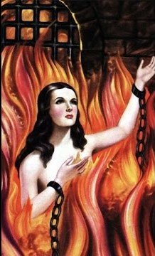 Es una mujer joven de lagos cabellos, quien tiene cadenas en sus mano y llamas de fuego que estan quemándole todo su cuerpo. Suele aparecerse en los pueblos del interior de Venezuela y su origen se remonta desde el siglo pasado.